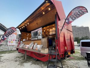 沖縄の米軍基地を中心にバーベキュー料理を提供するキッチンカー。