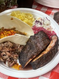アメリカンBBQの醍醐味のブリスケットや、自分でトッピングをして作っていくBBQタコス、そしてステーキなど