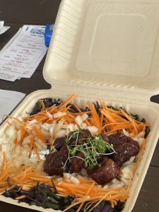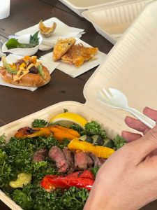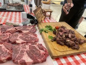ステーキコンテストの選手たちのステーキを味わえるので、