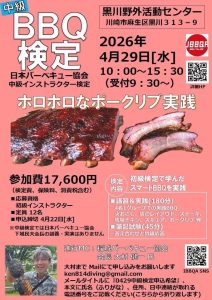 神奈川県【中級バーベキュー検定】4/29川崎市にて開催