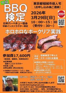 東京【中級バーベキュー検定】3/29開催