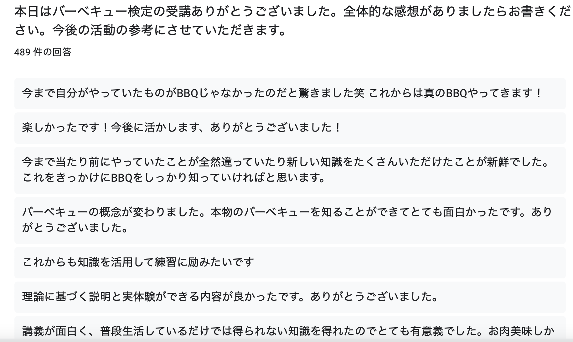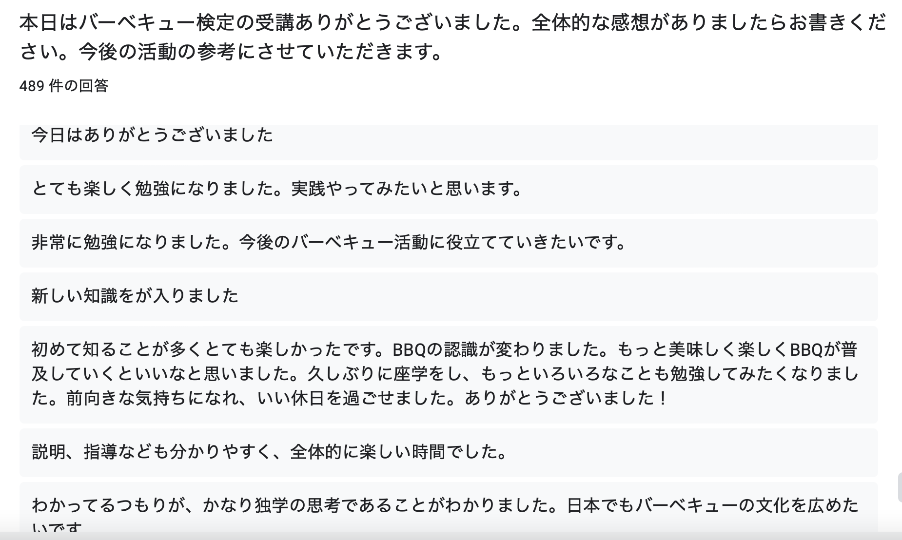 以下は検定終了後に受講者に書いていただいたアンケート結果とデータの一部です。